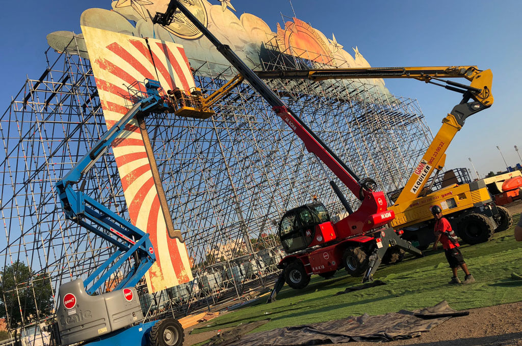 Montaje de festivales y conciertos, desde la fabricación e instalación de escenarios, infraestructuras (acondicionamiento de los recintos), así como el diseño y decoración, back stage, montaje, desmontaje y almacenaje. Nuestro objetivo es ayudar a nuestros clientes a crear eventos emocionantes y exitosos que se adapten a sus necesidades.